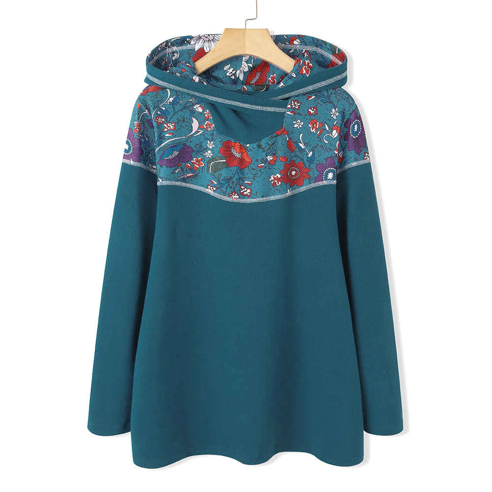 Floral Patch Printed Long Sleeve Hoodie For Women